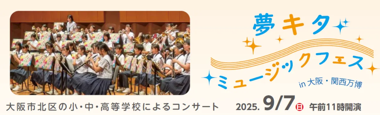 大阪市北区では、区内の小・中学校、高等学校生によるコンサート「夢キタ ミュージックフェス」を開催し、世界各地からの来場者に北区の心温まる音色を届けます。